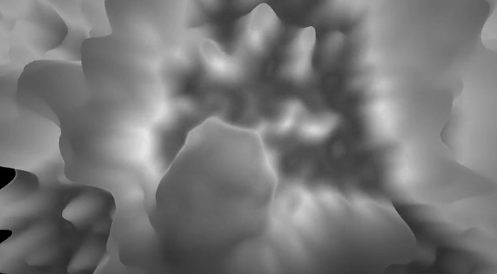 The installation features a collaborative work by Stanley and Dorin Cucicov, an artist and computer scientist from Chișinău, Moldova. The piece is a digital quadriptych of animated rhizome terrains that have been programmed to grow and shrink based on code inspired by the video games Stanley’s narrator explores. The artwork asks: is it possible to experience another person’s sense of time by developing a deep, empathic connection to them?